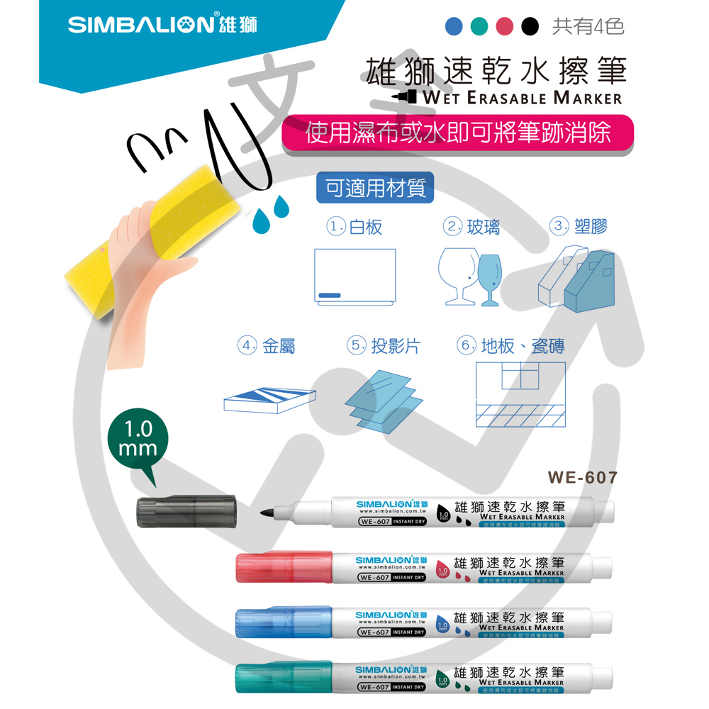 ※速乾水擦筆採用獨家研發配方書寫筆跡速乾,顏色鮮明清楚,平面光滑的材質表面上作記號標示、書寫及彩繪,想去除筆跡時,只要使用濕布或清水就能完全清除筆跡。