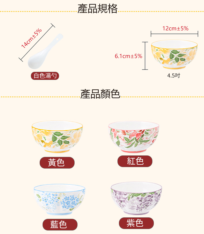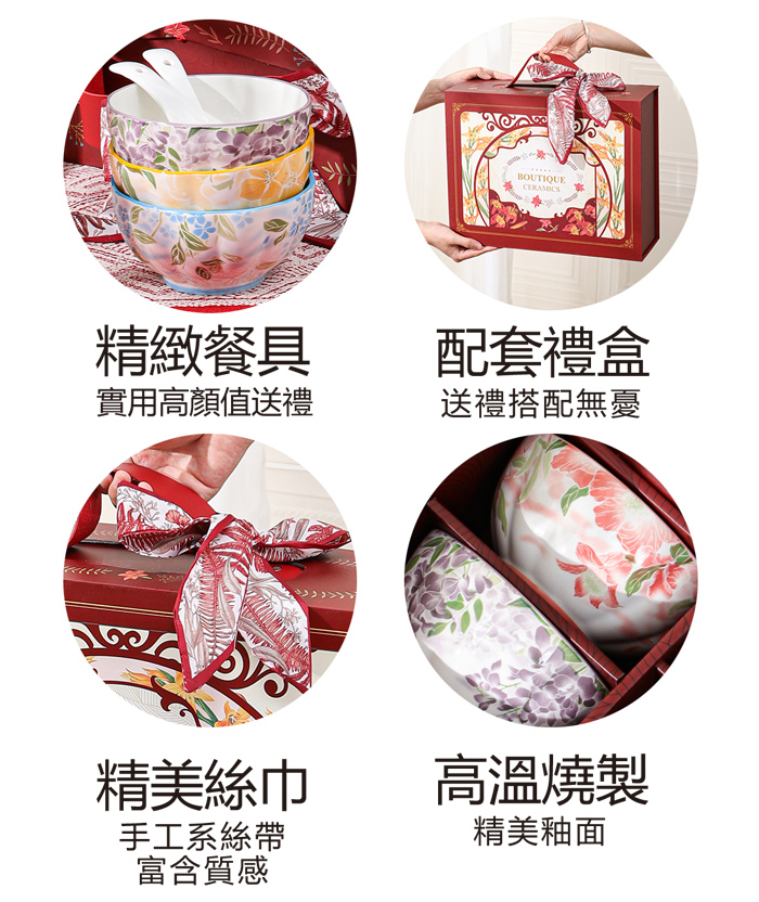 飪我行 - 花漾彩瓷碗匙組(4碗4匙) - CI-400GE