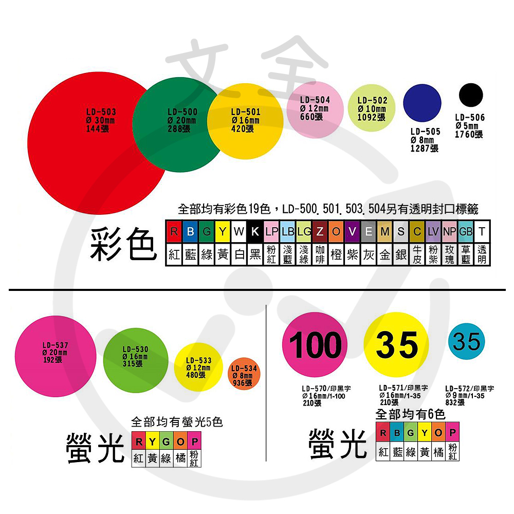 LONGDER龍德/華麗牌 彩色圓點標籤 |