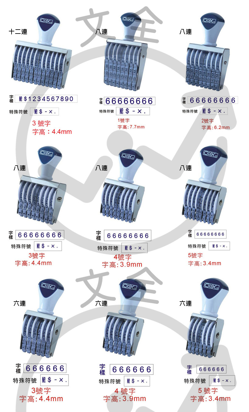 3號字十二連/3號字,字高4.4mm | 個 | 4714219733128 | $ 184 | |||