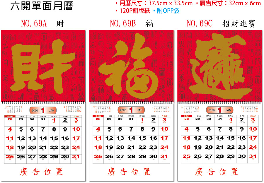 GT-6K單面月曆(3款) - GT-69A/B/C