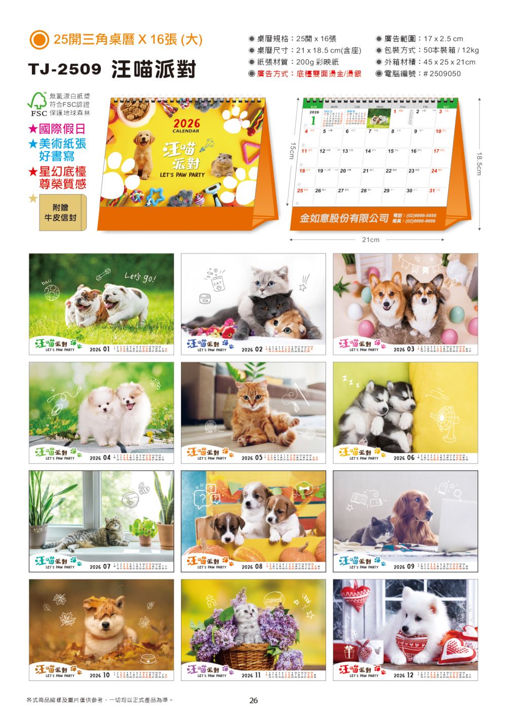 DL 25開三角桌曆 - 汪喵派對 - TJ-2509